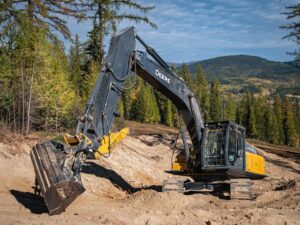 donated the use of a new John Deere excavator for construction of the massive dirt moving